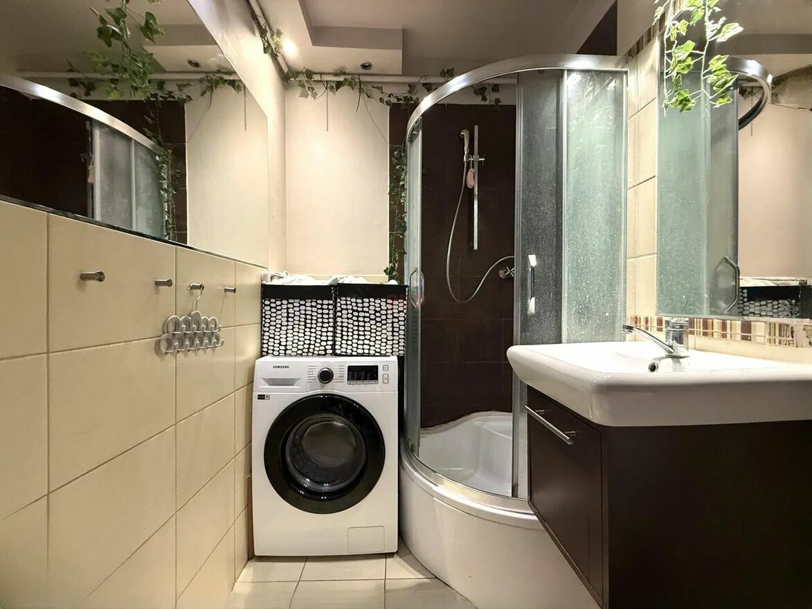Wystrój łazienki zadbał, by z każdej strony, można było zerknąć na swoje piękne oblicze. Pod prysznicem, jak i w kuchni, jest miejsce na więcej niż jeden