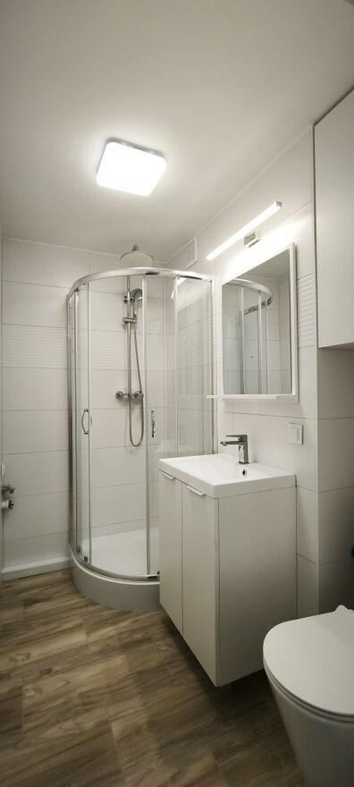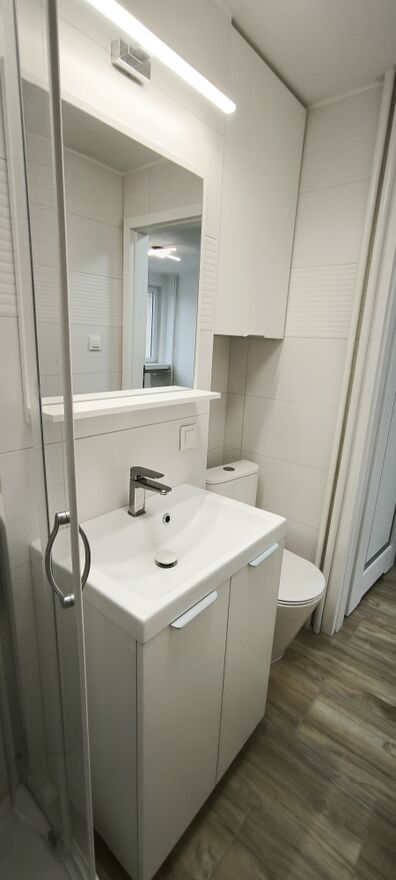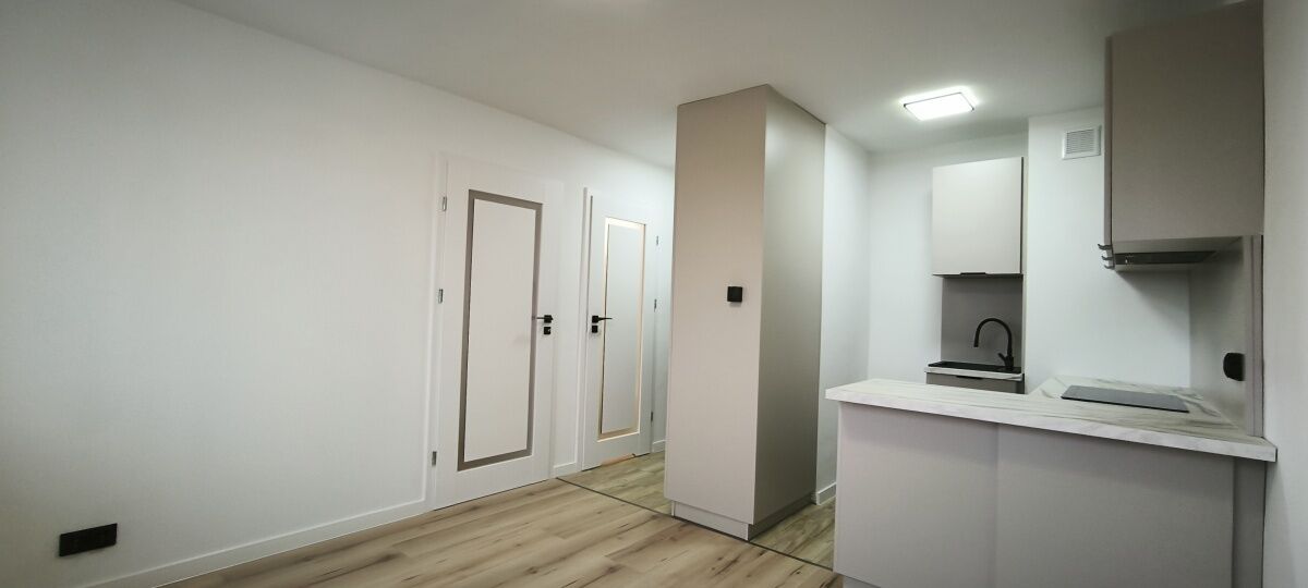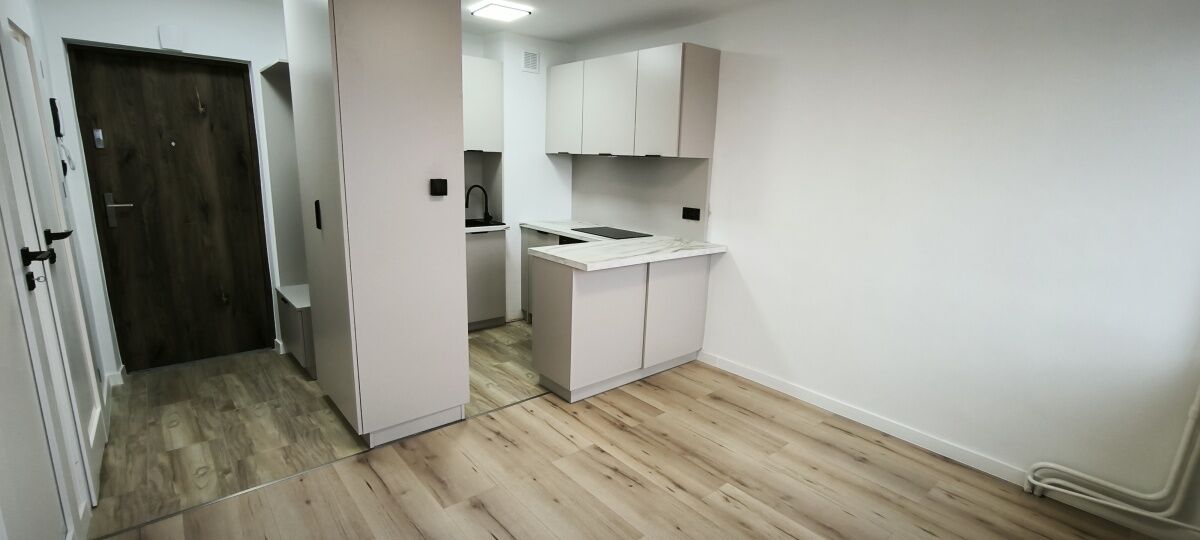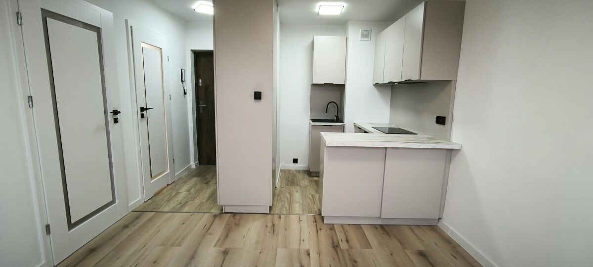 Lokal przeszedł generalny remont, podczas którego wymieniono instalacje elektryczną i wodną. Składa się z salonu z aneksem kuchennym, oddzielnej sypialni oraz łazienki z WC. Mieszkanie wyposażone jest w meble na wymiar od stolarza oraz nowe AGD w zabudowie: piekarnik, płytę indukcyjną, zmywarkę i pochłaniacz.