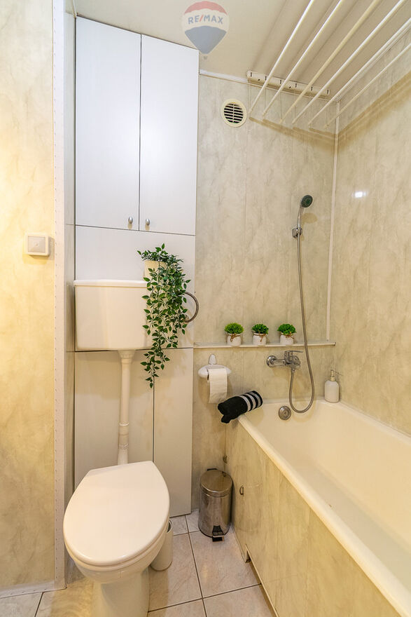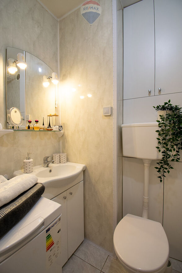 Łazienka z wanną, pralką, umywalką i WC zapewni wygodę