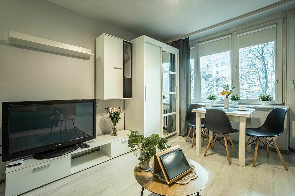 Dzięki korzystnemu rozmieszczeniu ścian mieszkanie daje możliwość przearanżowania przestrzeni i stworzenia **2 pokojowego układu z aneksem kuchennym**. To świetna opcja zarówno dla osób, które potrzebują dodatkowego pomieszczenia, jak i dla inwestorów chcących zwiększyć wartość mieszkania.