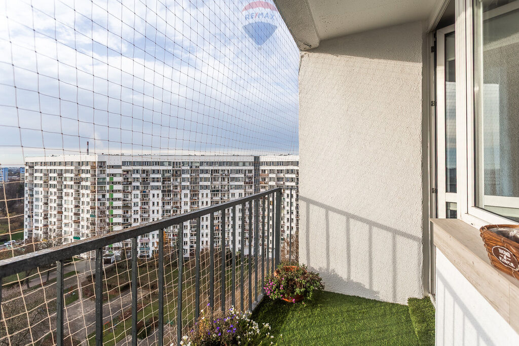 Mieszkanie posiada klasyczny balkon, z którego rozpościera się