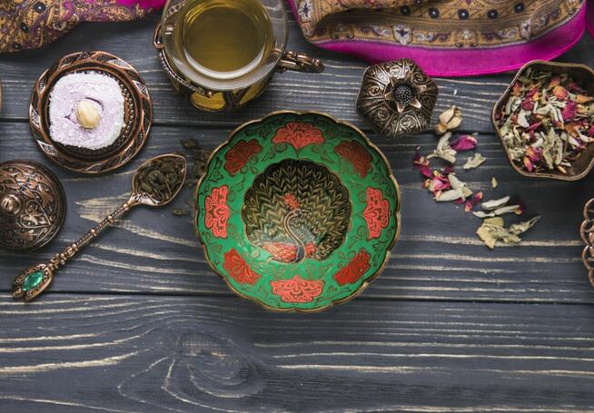 Miska z pawiem, paterka mosiężna, emaliowana z Indii, vintage, lata 80. Miska jest wykonana z mosiądzu, metal jest pokryty ...