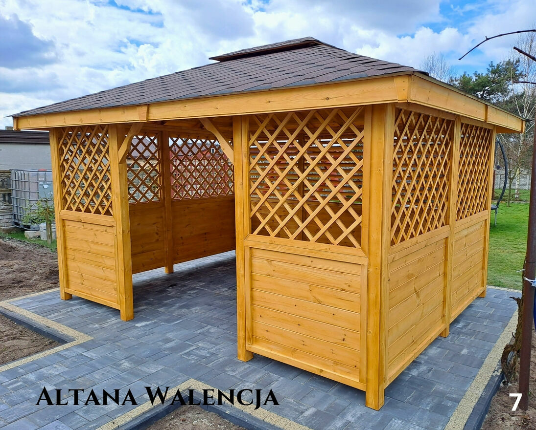 — Altana Walencja 3 m x 4 m wykonana z drewna świerkowego C24, suchego, struganego i oheblowanego;