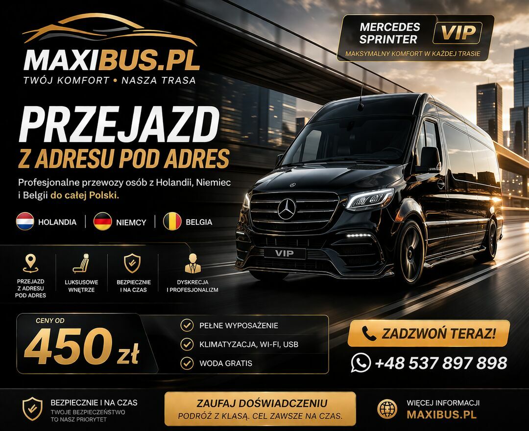 Postaw na sprawdzoną firmę Maxi Bus – oferujemy busy do Holandii, Niemiec i Belgii codziennie, bez przesiadek i w systemie door to door!