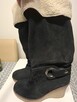 Zamszowe kozaczki na koturnie w kolorze czarnym. Wykonane z zamszu, używane. Doskonała opcja na chłodniejsze dni, ...