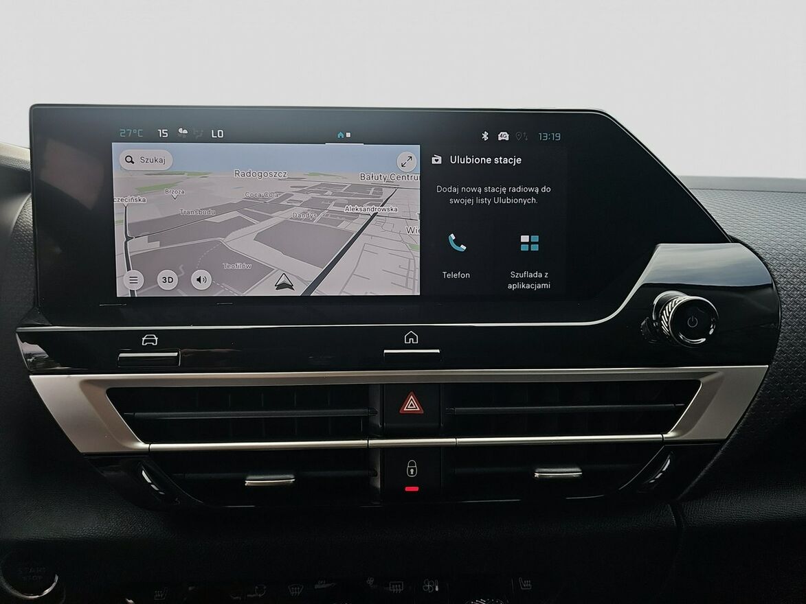 Nawigacja 3D z centralnym ekranem dotykowym 10’’ HD, Radio DAB, bezprzewodowy Apple CarPlay/ Android Auto, MY CITROËN ASSIST (RTBM 4G), Bluetooth, zaawansowane rozpoznawanie mowy, aktualizacje OTA (*S z Pakietem Connect Nav.
