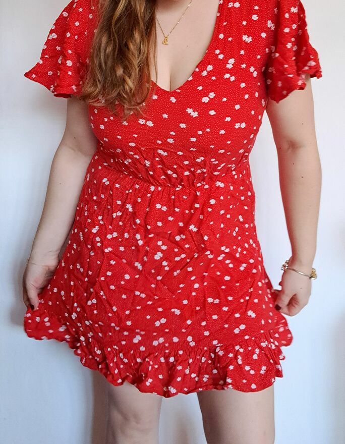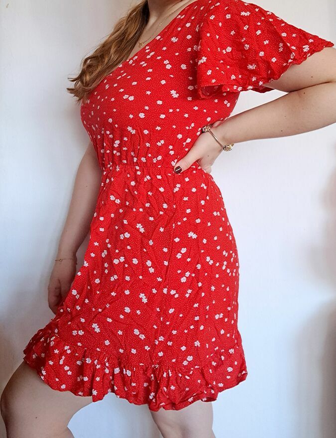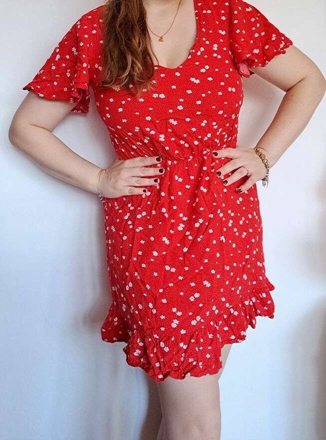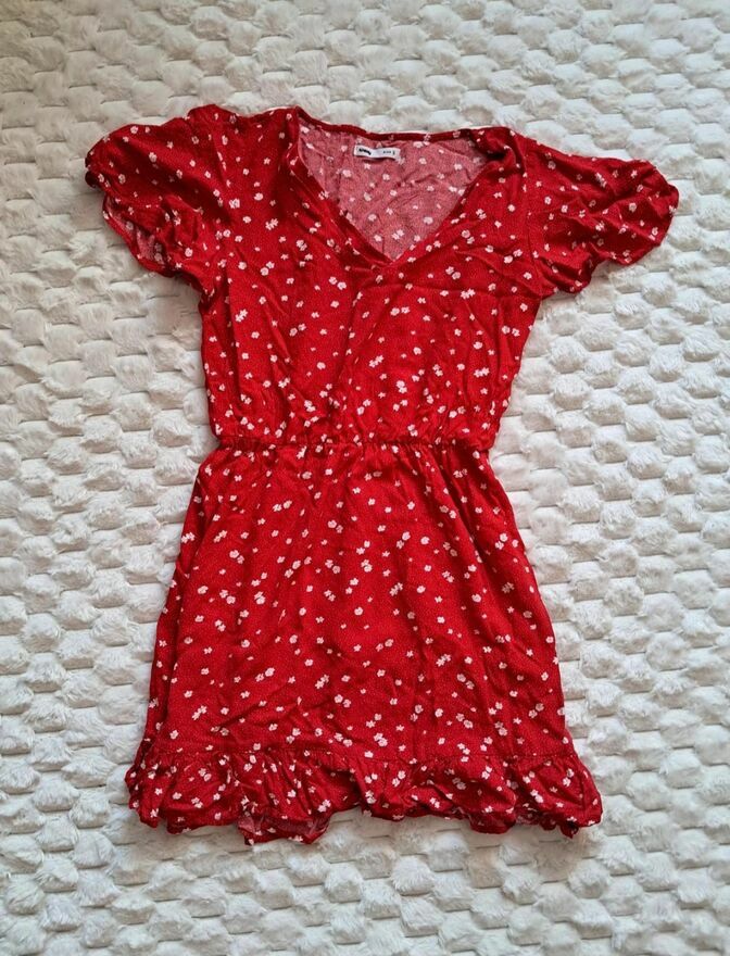 Sprzedam czerwoną sukienkę z Sinsay, rozmiar S. Długość całkowita 75 cm. Długość od pachy do pachy 40 cm. Założona kilka razy. Idealna na lato – 100% wiskoza. Odbiór osobisty Łódź Teofilów.Agata