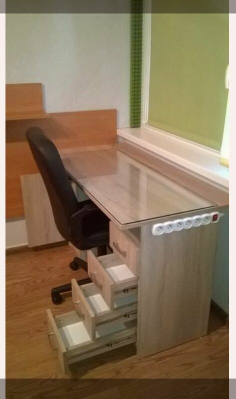 Wyposażenie podstawowe pokoju: wersalka, szafa, biurko, fotel obrotowy stolik kawowy, regał na książki oraz pianino dla osób zainteresowanych korzystaniem z instrumentu.
