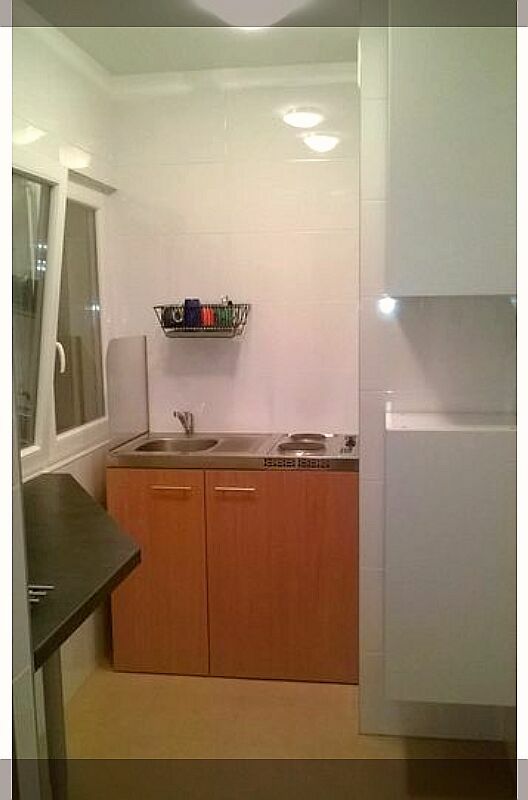 Kuchnia mieści zintegrowany zestaw kuchenny zawierający lodówkę, płyty grzejne, zlew z okapnikiem, szafki na naczynia, ponadto czajnik elektryczny, mikrofalówkę oraz inne drobne sprzęty AGD. W mieszkaniu został wyeliminowany gaz.