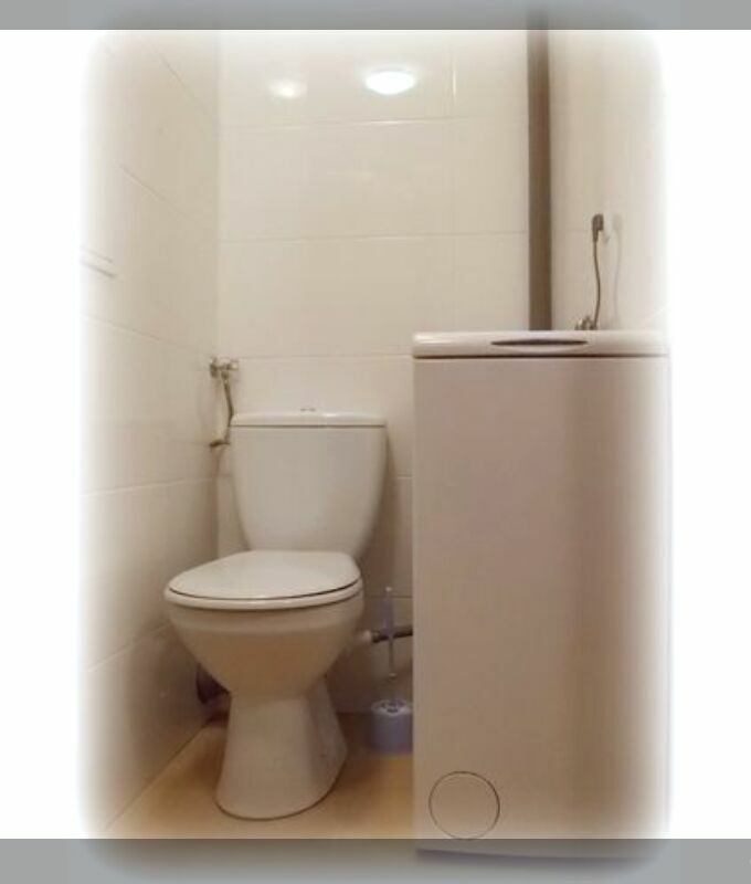 Łazienka z toaletą o powierzchni 3,5 m 2 przeznaczona jest dla obu wynajmujących osób stąd też ogłoszenie dedykowane jest wyłącznie Paniom. Wyposażenie podstawowe łazienki: kabina prysznicowa, umywalka, pralka, kompakt WC, zamykane szafki oddzielne dla każdej z Pań.