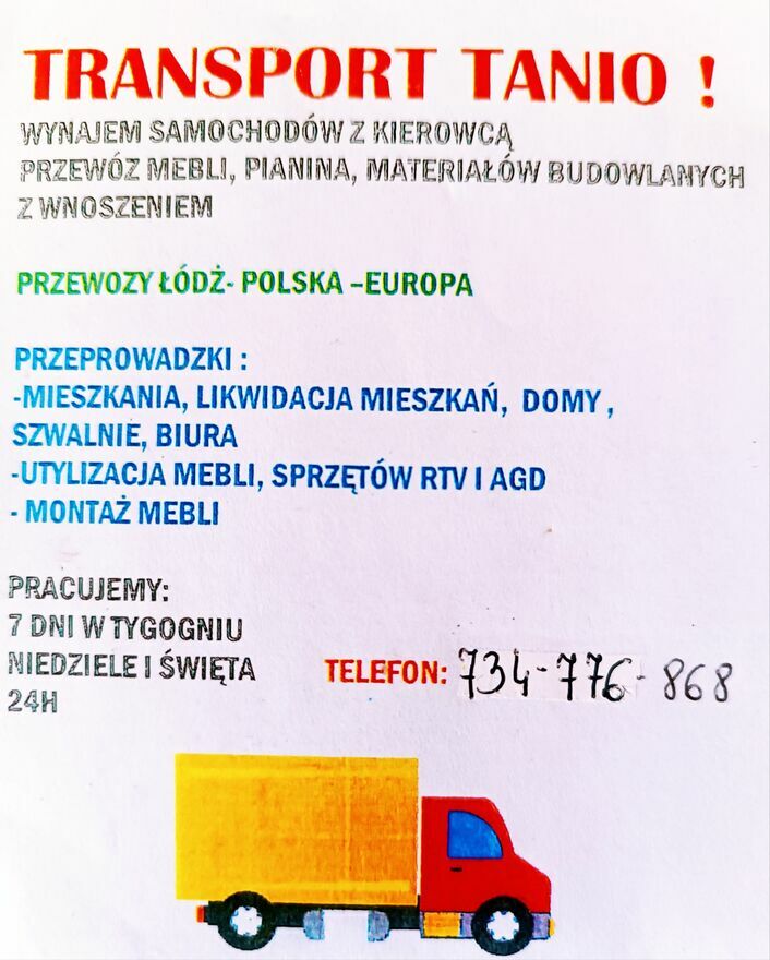 Opis stanowiska:- Praca dodatkowa przy przeprowadzkach i likwidacjach mieszkań na terenie Łodzi.