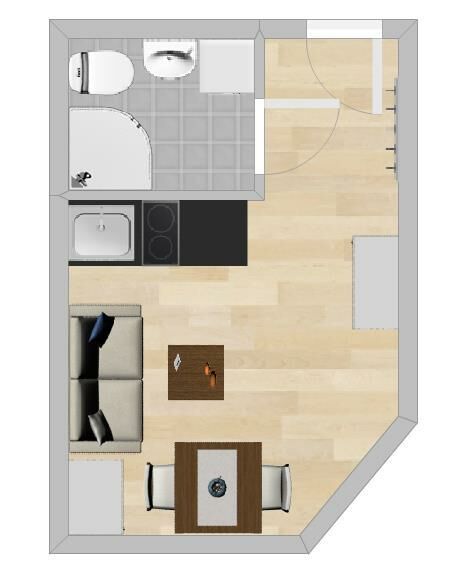 Kawalerka jest w pełni urządzona i gotowa do zamieszkania.