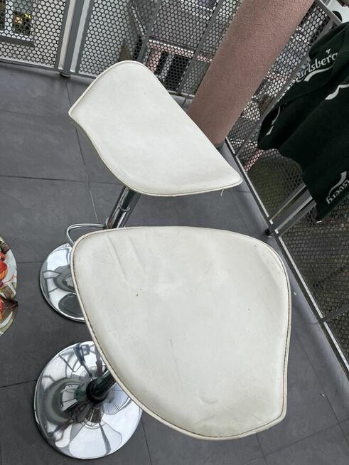 Sprzedam używane białe fotele w stylu barowe do kuchni. Sprawne nic nie zepsute . Ślady użytkowania widać na zdjęciu