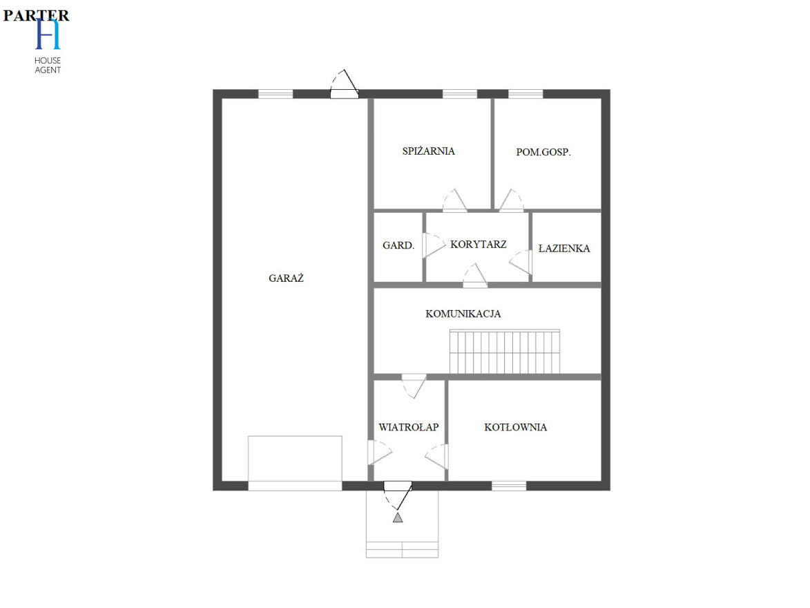 • Parter: wiatrołap, pralnia, garderoba, łazienka, spiżarnia, pomieszczenie gospodarcze