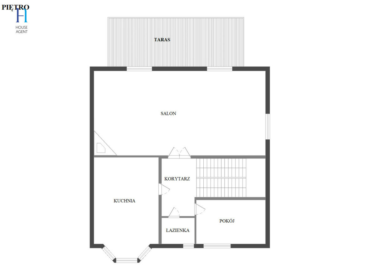 • I piętro: salon z tarasem, kuchnia, gabinet, toaleta