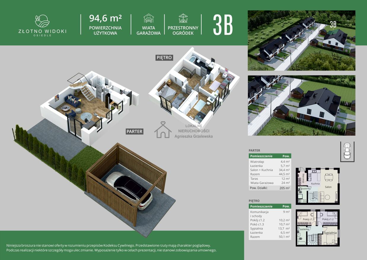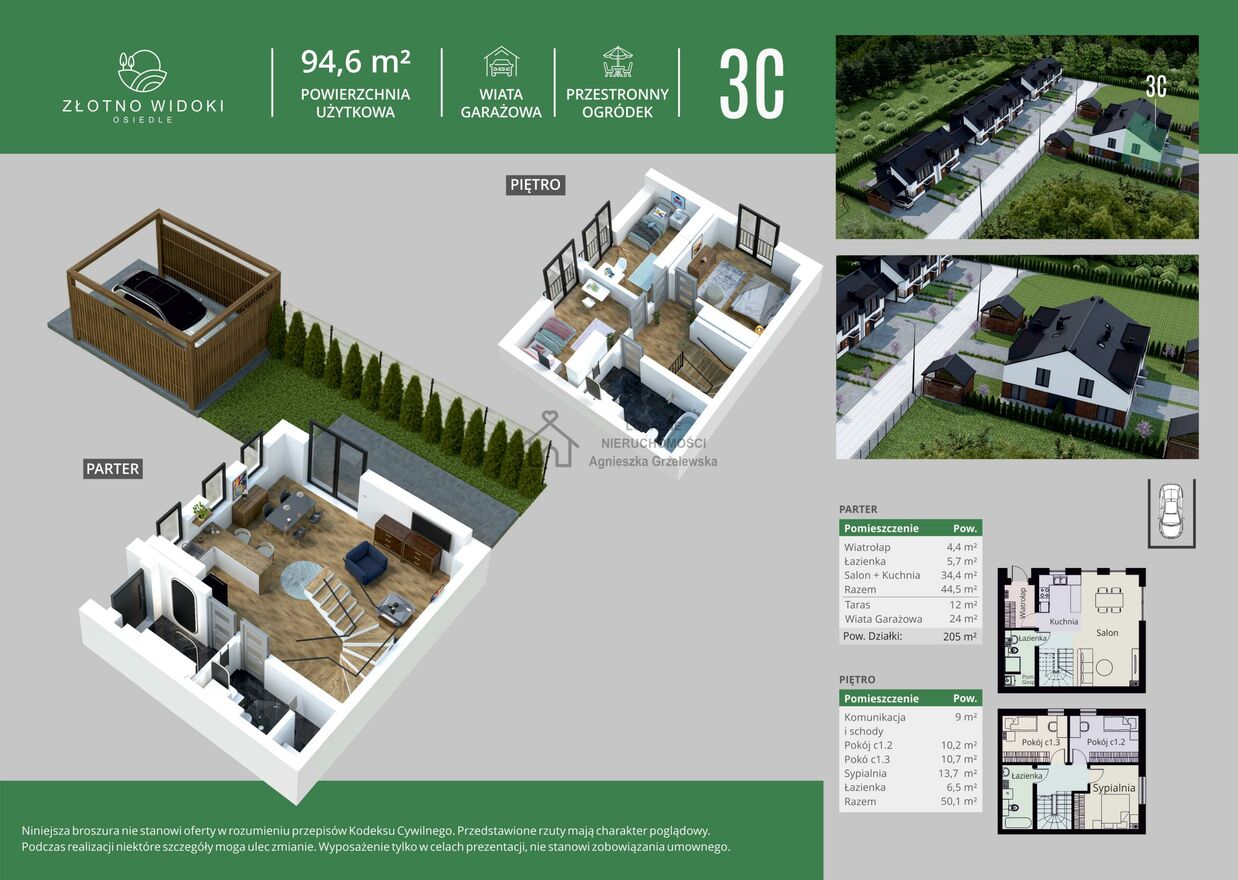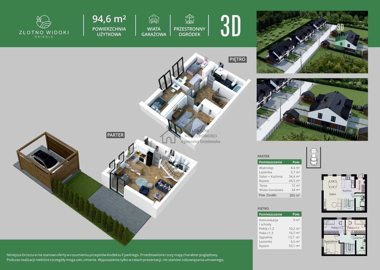 Złotno Widoki to kameralna inwestycja komfortowych domów w zabudowie bliźniaczej i szeregowej o powierzchni ok 95m2 z ogródkami i m parkingowymi. Funkcjonalny i przemyślany rozkład pomieszczeń, doskonale zaprojektowana przestrzeń stref dziennych i nocnych wraz z własnymi ogródkami każdego domu pozwala cieszyć się życiem bez dodatkowych kosztów i czasu poświęconego sprzątaniu niewykorzystanej przestrzeni. Tarasy oraz wiaty garażowe z pomieszczeniami gospodarczymi dopełniają funkcjonalności większości domów.