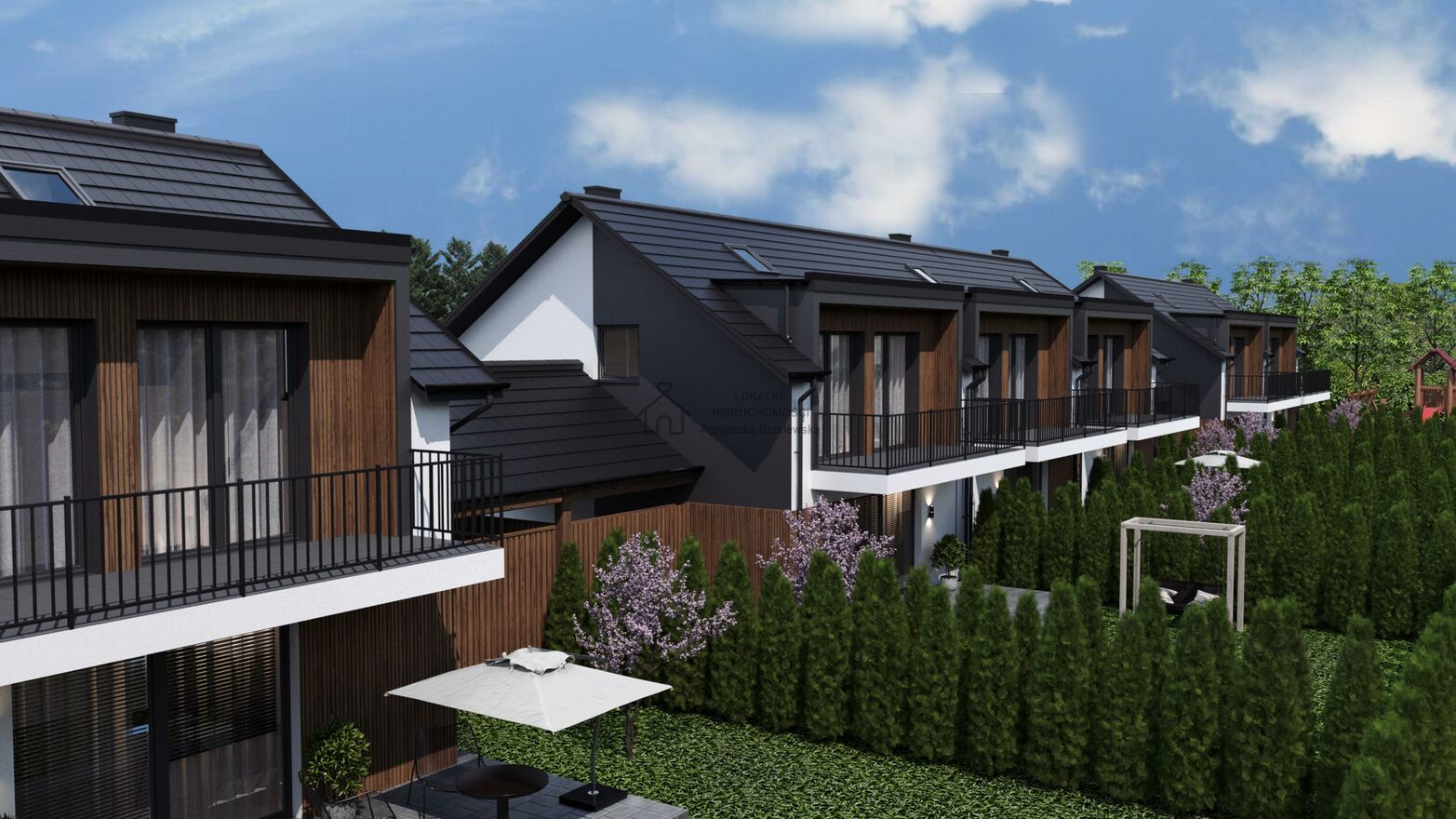 * Kameralna inwestycja o oryginalnej stylistyce z 12 domami usytuowanymi w 4 budynkach szeregowych i bliźniaczych z dopracowanymi elementami.