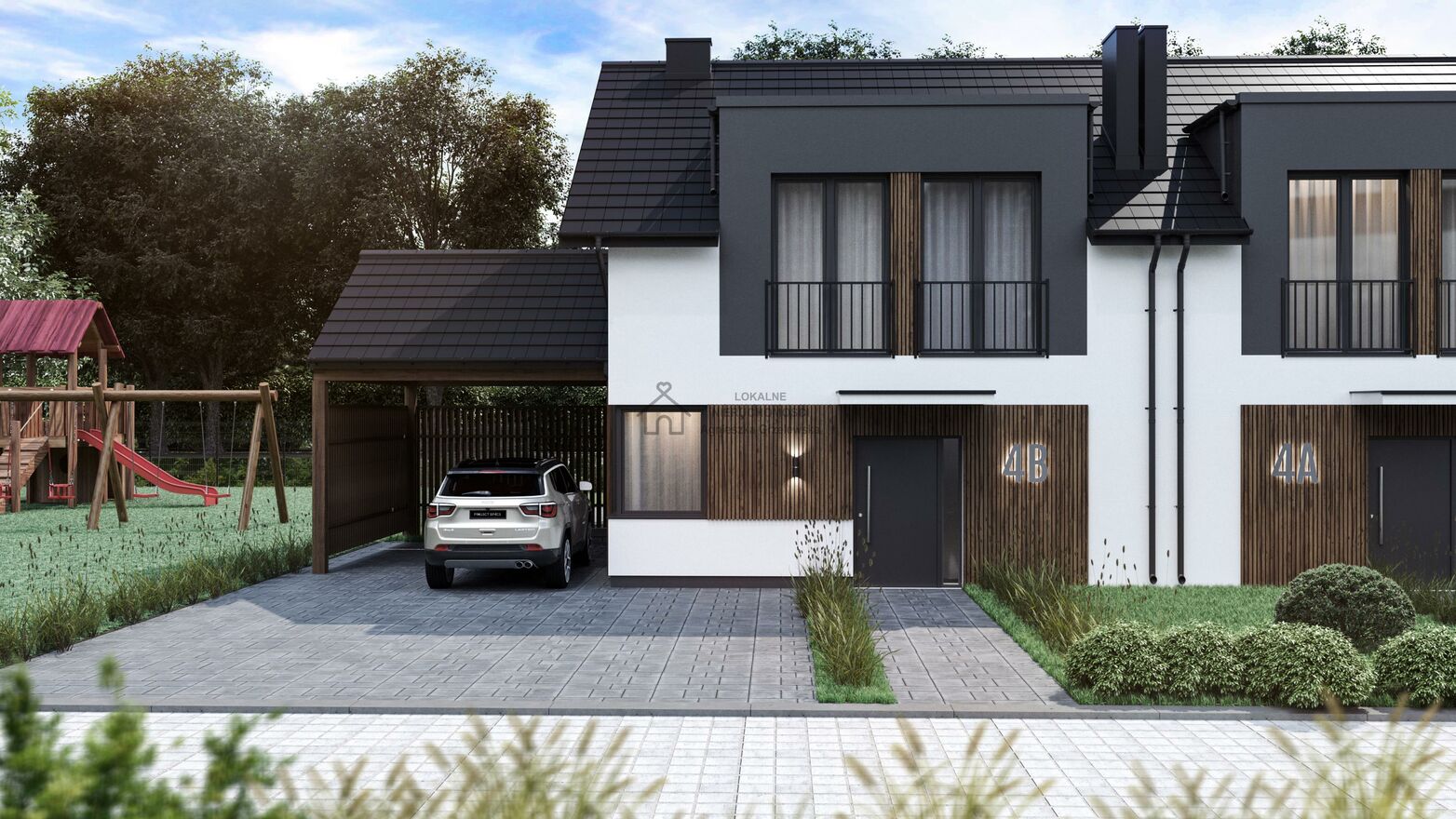 Budynek w zabudowie szeregowej: dom 3B pow. ok 94,6m2 działka: 217m2 cena: 869 000zł plus 20tys wiata