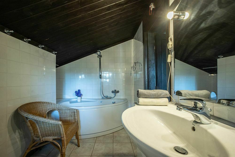 Poddasze: dwie sypialnie (po 12 m²), łazienka (5 m²), duży hol (19 m²) – przestrzeń z potencjałem na bibliotekę, bawialnię lub pracownię