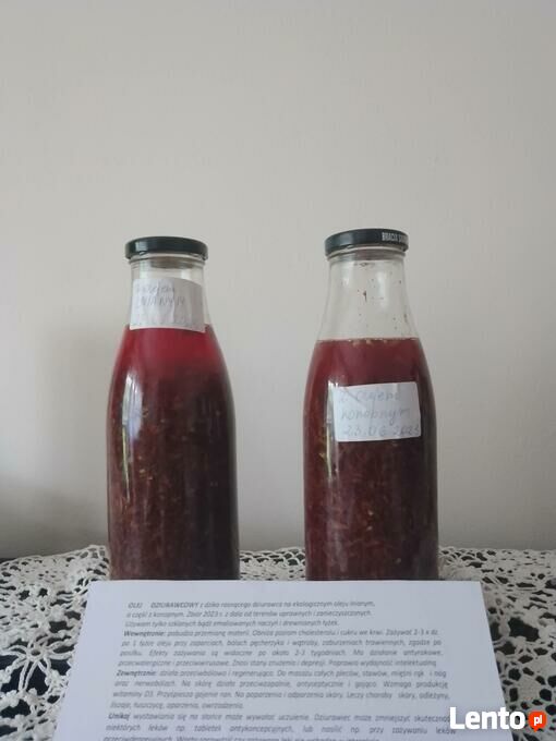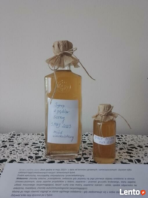 Odsprzedam nadwyżkę mojego domowy syropu z dziko rosnącej pokrzywy z dodatkiem miodu i cytryny. W maju, na jednej z moich ziołowych wypraw znalazłam spory łan i szkoda by było nie zerwać więcej i się tym bogactwem natury podzielić. Pokrzywa w tej formie jest najlepiej przyswajalna, ma najwięcej wartości leczniczych i odżywczych. Skład: świeżo zerwana pokrzywa, górne listki, polski ekologiczny miód naturalny, cytryna i cukier w celach konserwujących. Syrop zwiększa wydalanie szkodliwych produktów z organizmu, ułatwia trawienie, zmniejsza stężenie glukozy, zwiększa liczbę krwinek czerwonych i hemoglobiny we krwi, likwiduje hipowitaminozy, wzmacnia, zwiększa odporność, działa przeciwzapalnie, przeciwkrwotocznie, antyseptycznie. Reguluje przemianę materii, zapobiega powstawaniu kamicy żółciowej, zastojom żółci, zapobiega przedwczesnemu starzeniu się organizmu. Przeciwdziała miażdżycy.Wskazania: nadmiar chloru i sodu w organizmie, obrzęki, nadciśnienie, mocznica, skąpomocz, dna, zapalenie i zakażenie nerek, dróg moczowych, kamica moczowa, krwiomocz, cukromocz i białkomocz, cukrzyca, białe upławy, nadczynność tarczycy, zaburzenia czynności i zapalenie przydatków, zaburzenia miesiączkowania, połączone z upławami, osłabienie, przekwitanie, miażdżyca, pękanie naczyń krwionośnych, niedokrwistość, omdlenia, choroby zakaźne i skórne, przeziębienie, rak, reumatyzm,, choroby układu oddechowego, zaburzenia trawienia, biegunka, choroby wątroby, śledziony, trzustki, pęcherzyka żółciowego i żołądka, nieżyt jelit, zaparcia, zatrucia. choroby włosów. Zawiera: magnez, fosfor, wapń, siarkę, żelazo, potas, jod, kwas foliowy, krzem i sód. wit: A, K, B2, C.