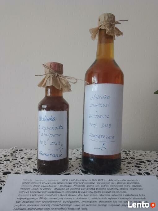 (Intrakty) alkoholatura (2023) z glistnika, z pokrzywy, z bylicy, z dziurawca, żywokost + żmijowiec, likier z zielonego orzecha.