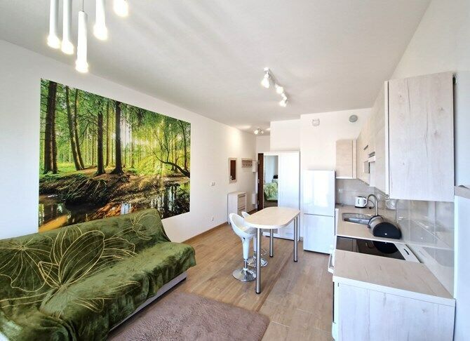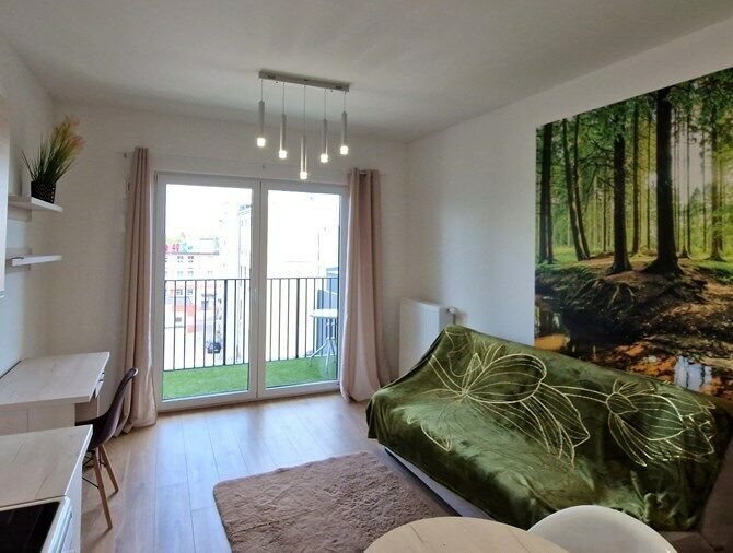 Opis lokalu:Do wynajęcia jasna i w pełni wyposażona kawalerka w apartamentowcu