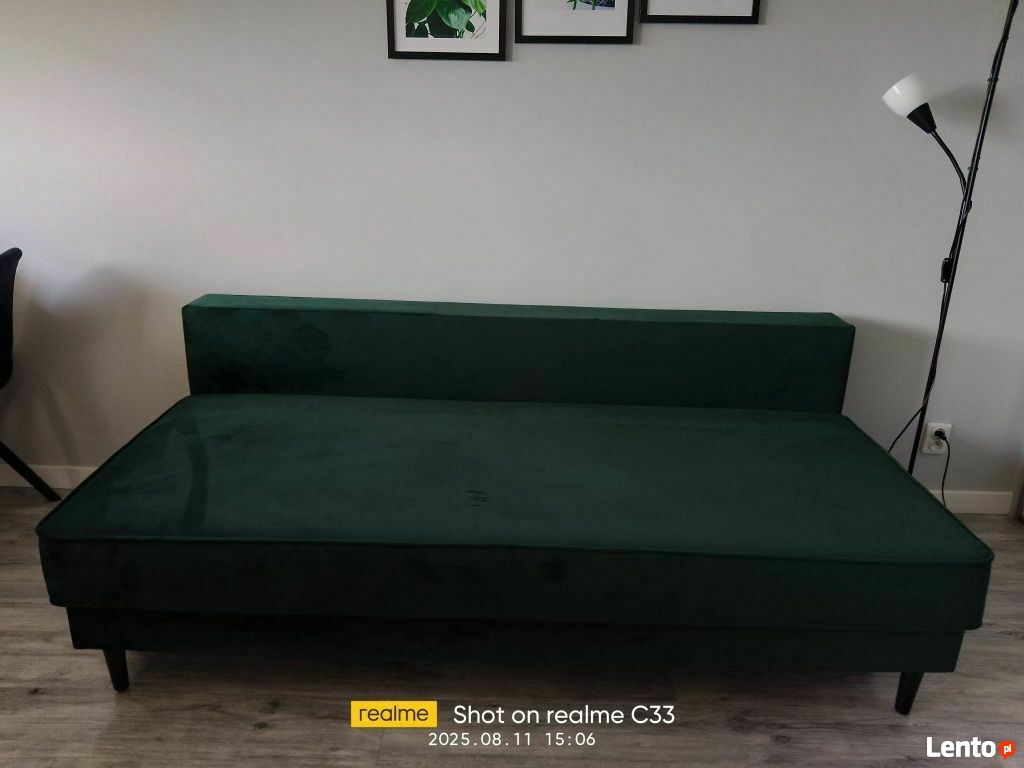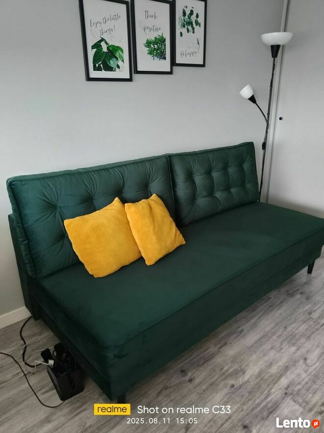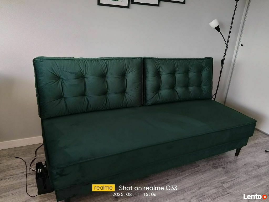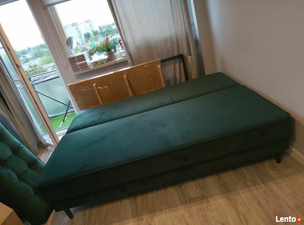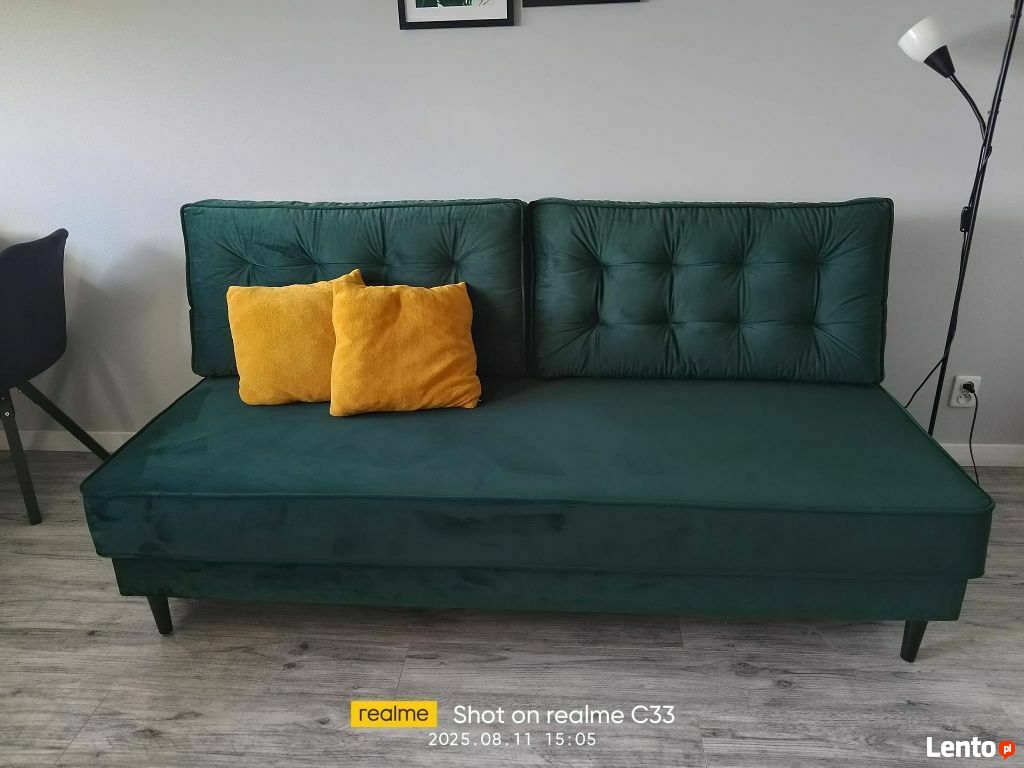 Duża rozkładana kanapa welurowa