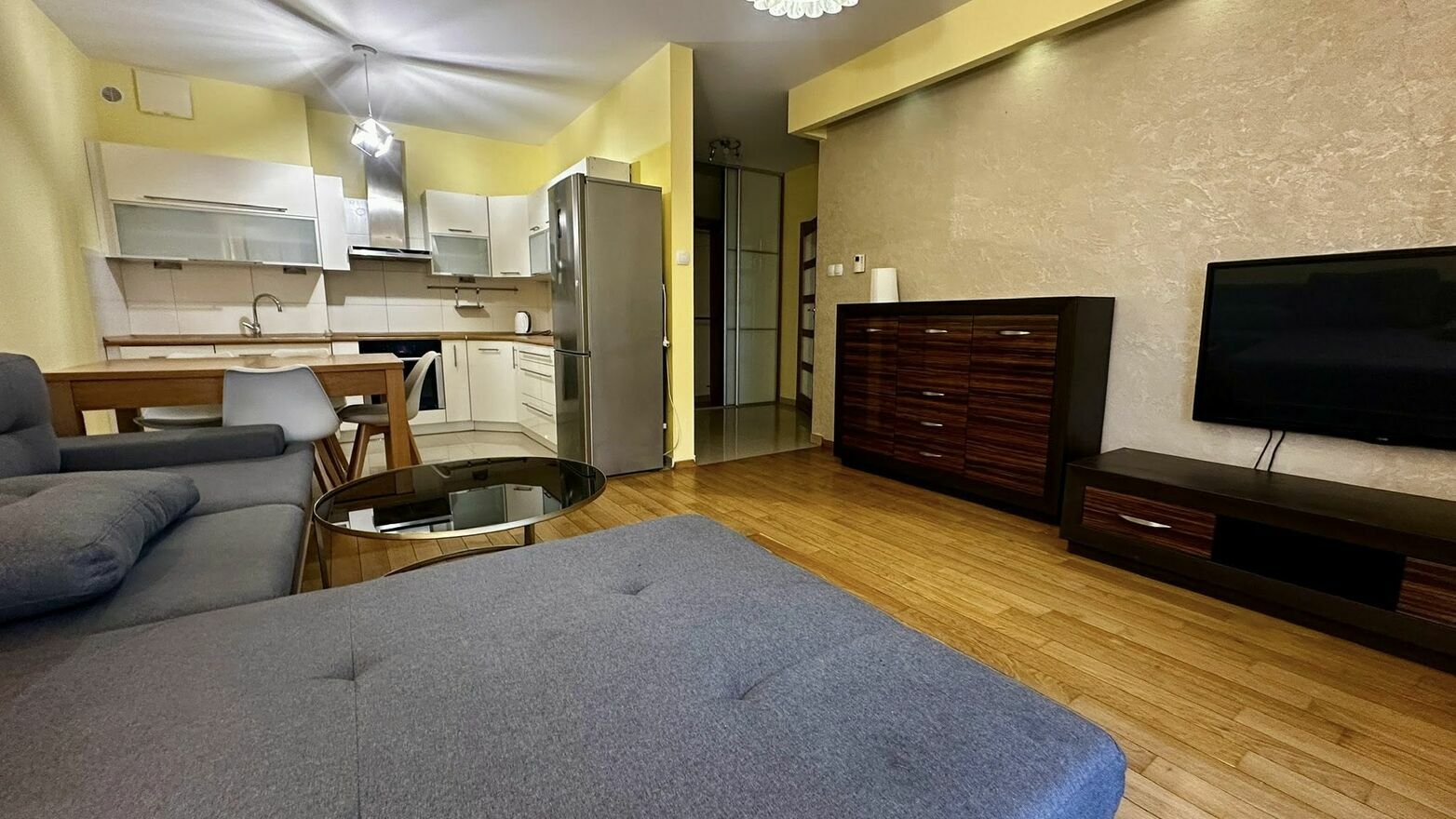 Wynajmę dwupokojowe mieszkanie o powierzchni 52 mkw, zlokalizowane przy ul. Żeligowskiego 43 w Łodzi (osiedle City Park).Mieszkanie jest w pełni umeblowane. W salonie znajduje się duża kanapa, stolik, telewizor, szafka rtv oraz komoda. Salon połączony jest z kuchnią, która wyposażona jest we wszystkie sprzęty AGD (lodówka, piekarnik, zmywarka, płyta), a także w nowe naczynia niezbędne do codziennego funkcjonowania. W kuchni stoi również stół z krzesłami. W sypialni mieści się łóżko, telewizor, a także pojemna szafa. Łazienka wyposażona jest w duża wannę, toaletę, umywalkę, szafkę oraz pralkę. W przedpokoju znajduje się duże lustro oraz szafa.