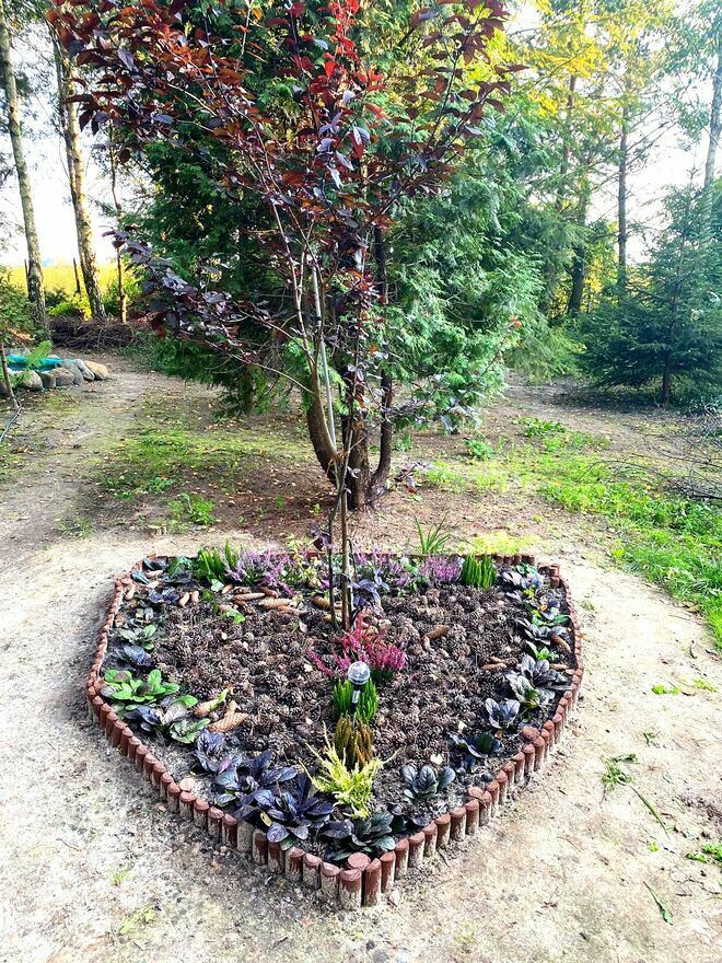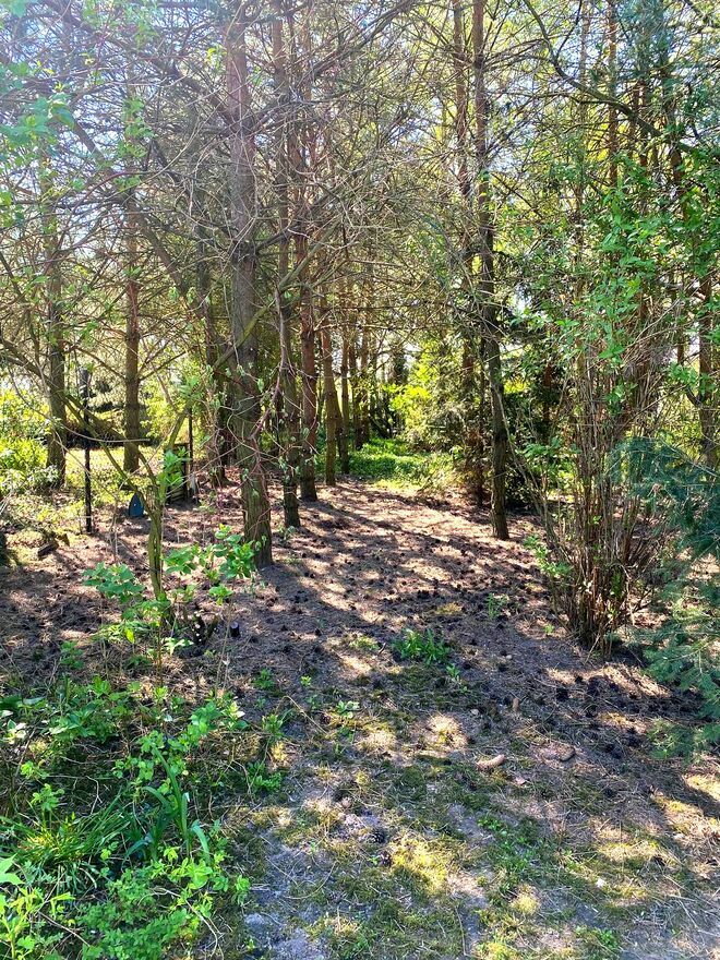 Teren równy i suchy (różnica poziomów tylko ok. 1,2 m), otoczony pięknymi drzewami i naturalnym ogrodem.