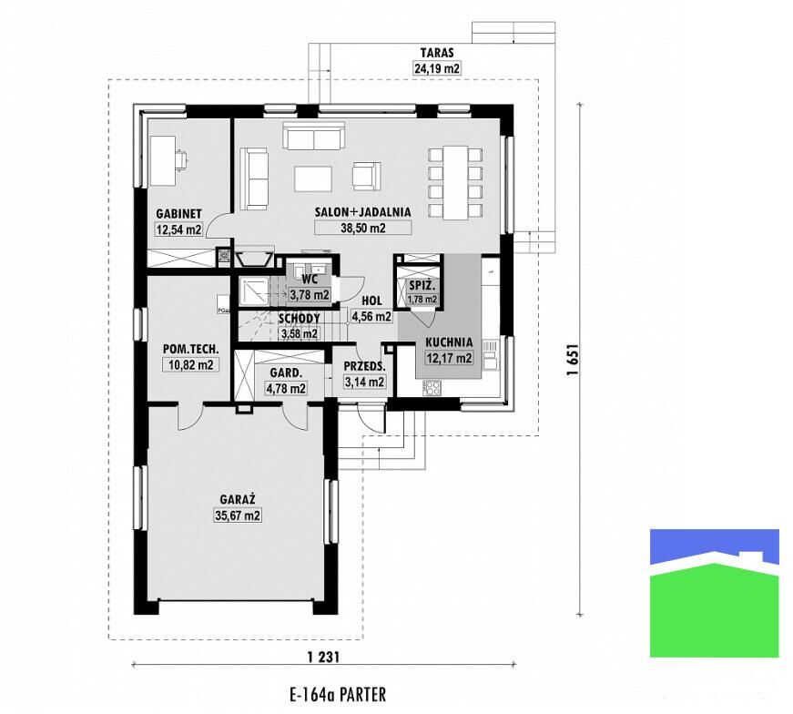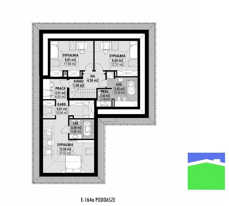 (typ E-285 dla działki 977 m2 oraz E-164A dla działki 2340 m2).