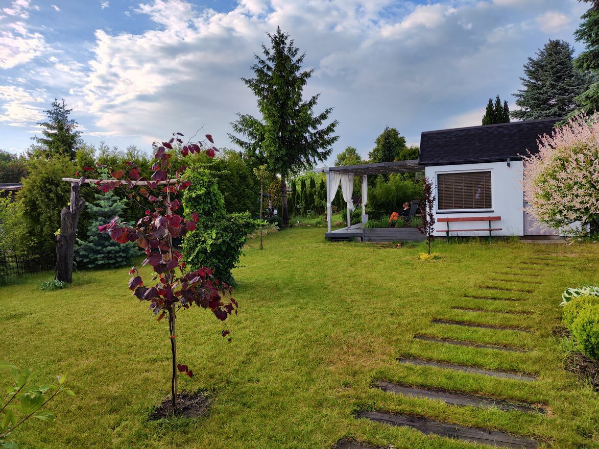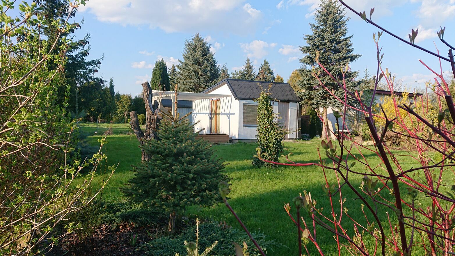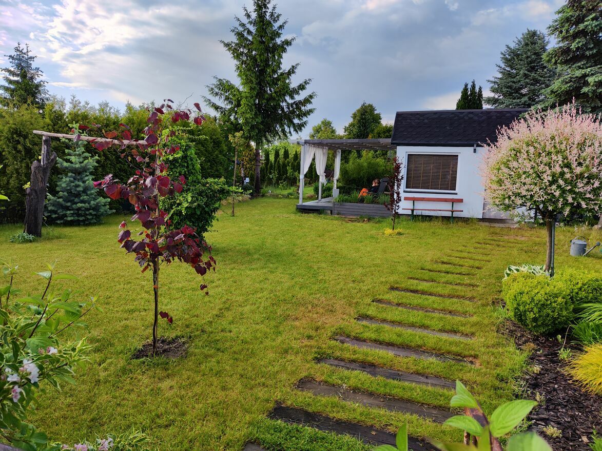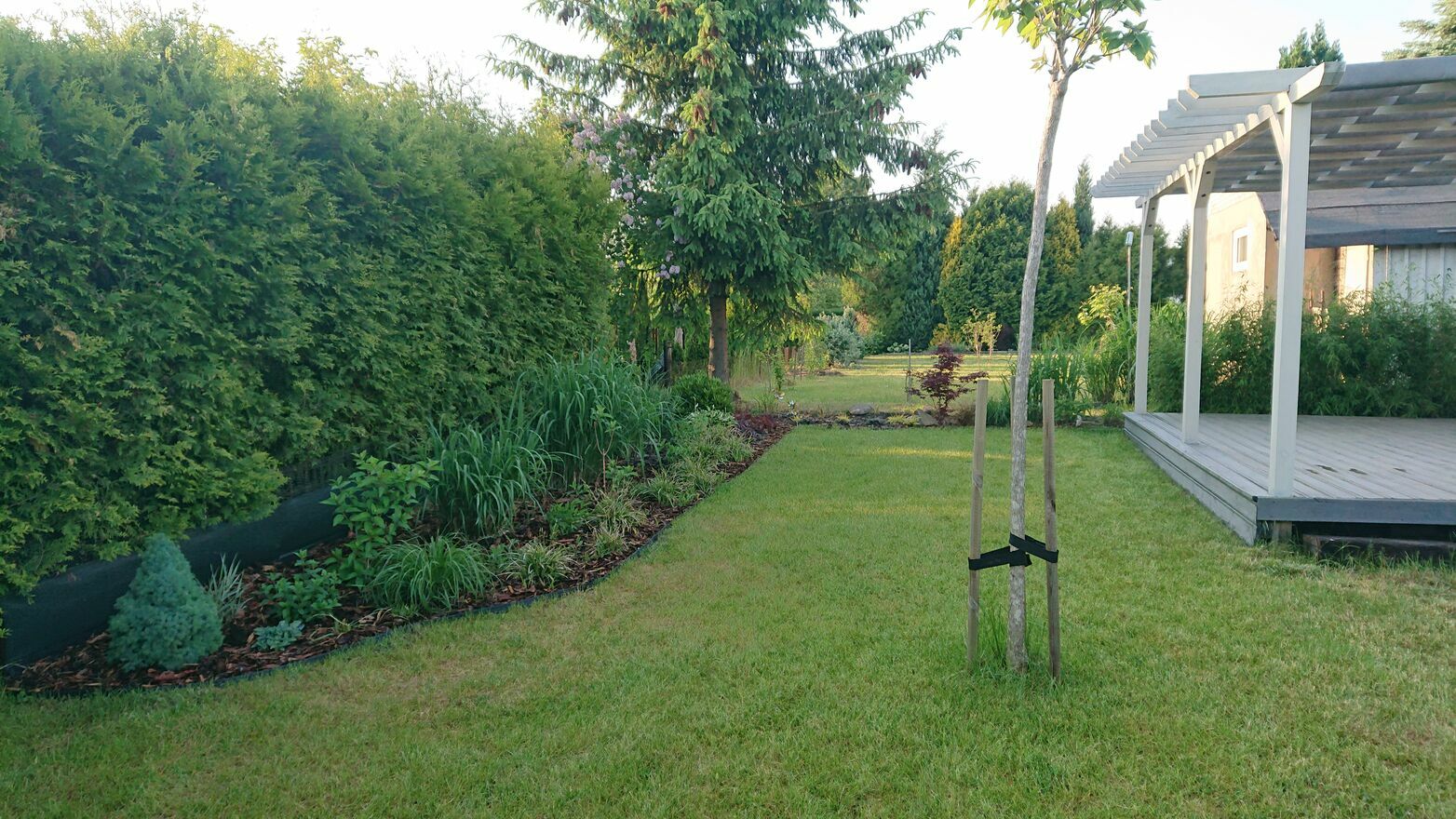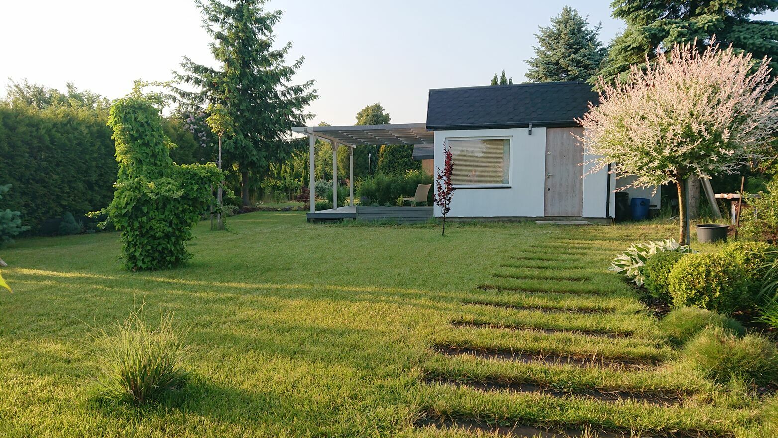 Na terenie działki znajduje się urządzony trawnik, kilka krzaków borówki amerykańskiej i jest posadzonych dużo roślin ozdobnych, traw i kilka iglaków.