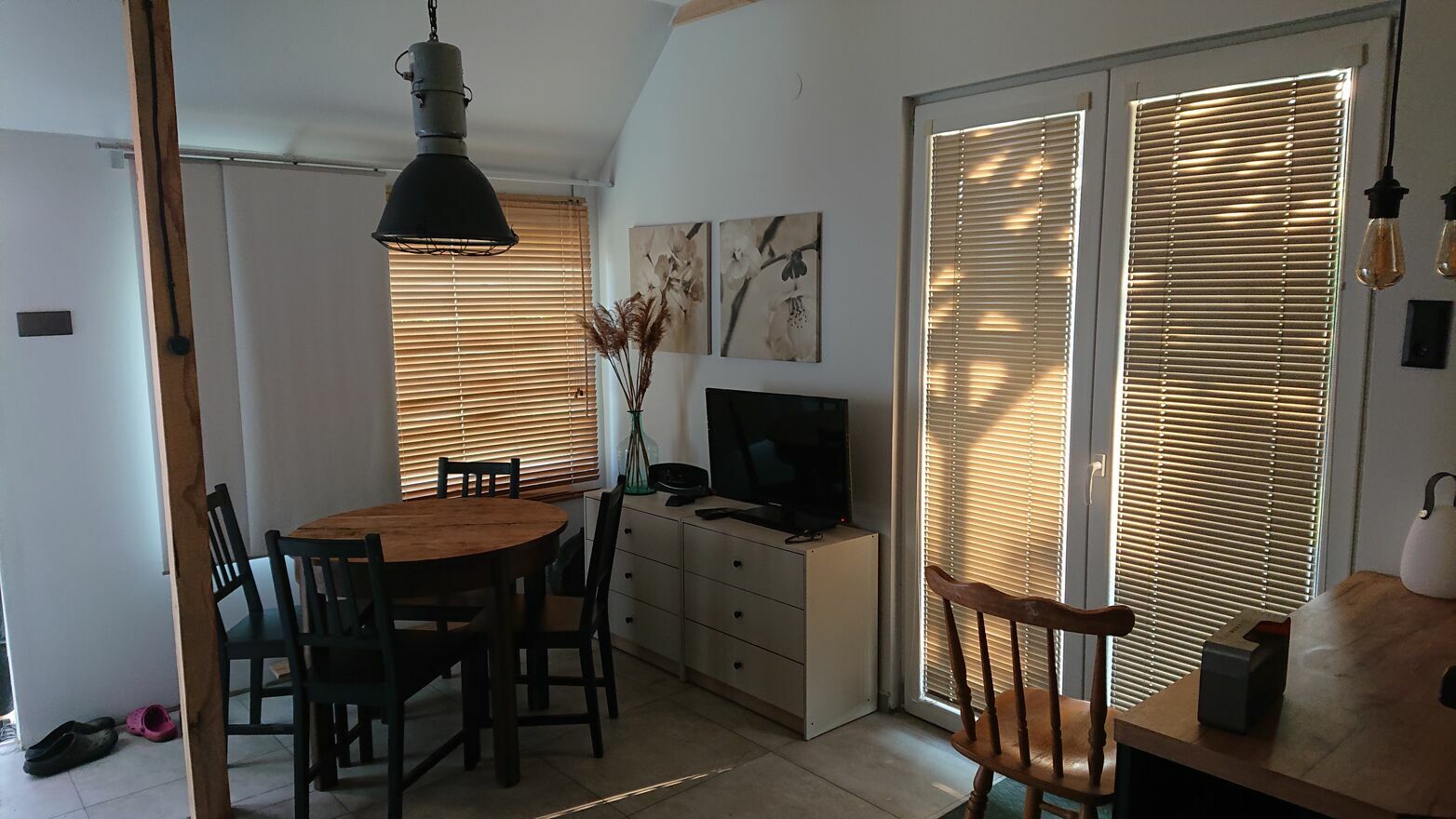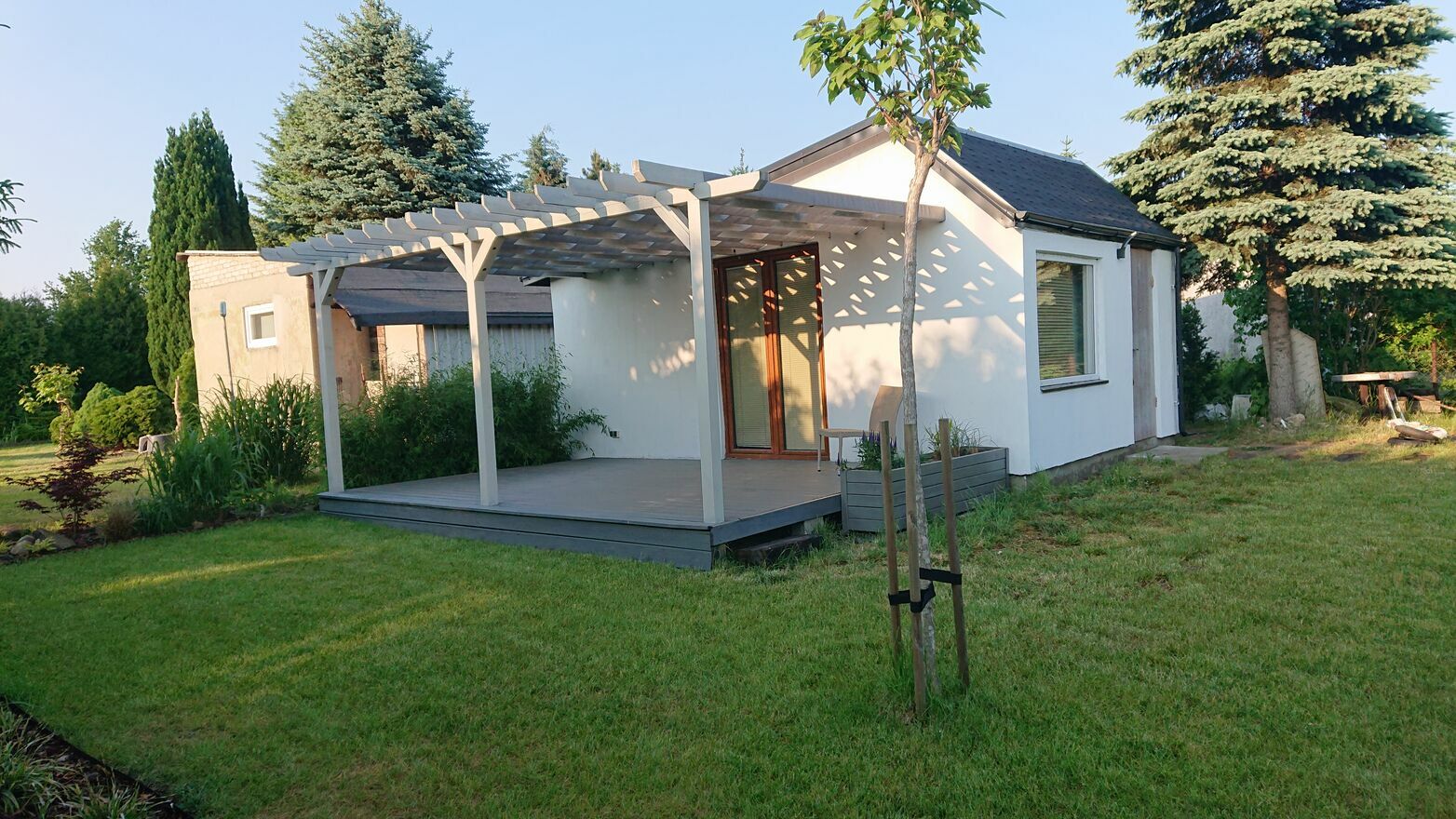 Działka i domek znajdujący się na niej są uzbrojone w media. Jest doprowadzona woda, prąd i kanalizacja lokalna. Pomieszczenie o powierzchni około 25m2 składa się z pokoju z aneksem oraz łazienki z prysznicem i wc. Z pokoju jest bezpośrednie wyjście na zadaszony taras o powierzchni ok 18 m2.