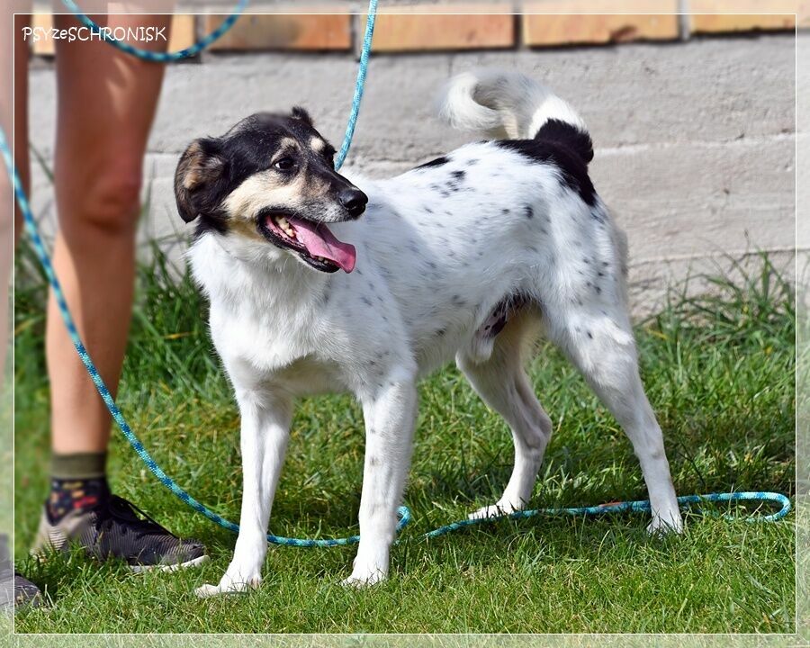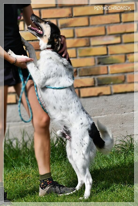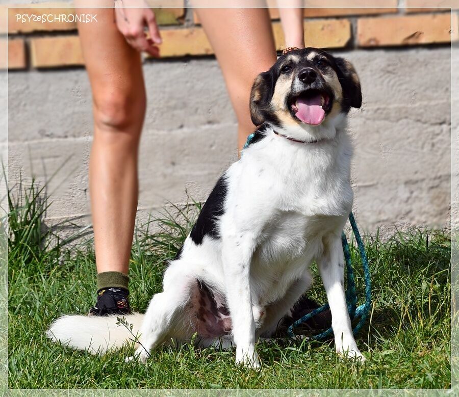 Radosny, przytulaśny, wzorowo chodzi na smyczy, przyjaźnie reaguje na inne psy. Cieszy się bardzo na każde odwiedziny.