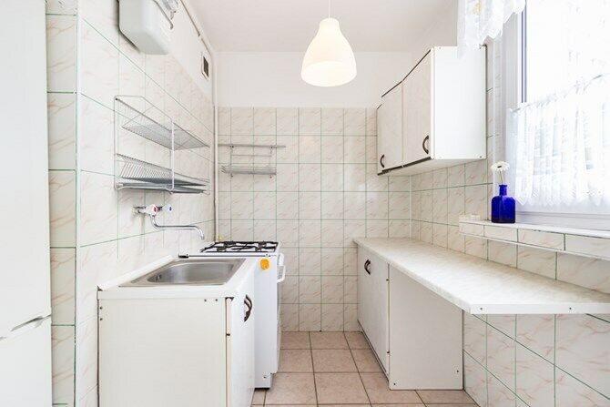 Kuchnia: wykończona w glazurze i terakocie, szafki wiszące i
