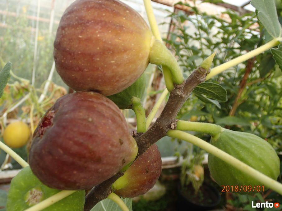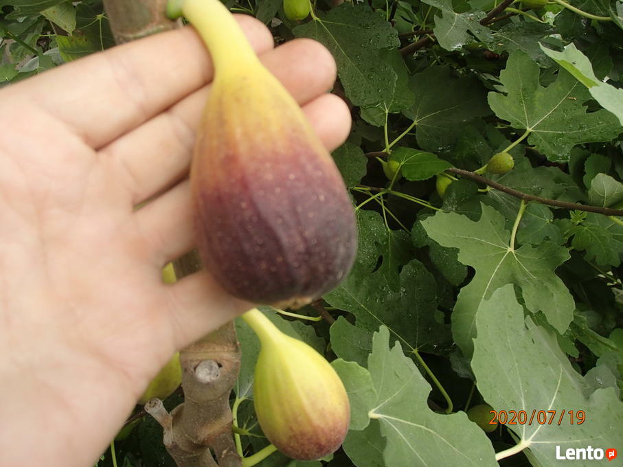 Odmiana brązowa turecka jest samopylna i nie potrzebuje innych roślin ani owadów do zapylenia. Figi nie kwitną tak jak większość roślin tylko od razu za każdym liściem pojawia się jeden lub na niektórych odmianach dwa zawiązki owoców. Kwiat jest w środku zawiązka. Owoce dojrzewają stopniowo od dołu. Zawiązki które pojawią się pod koniec lata nie dojrzeją i przy uprawie pojemnikowej zaczną rosnąć od marca i stopniowo dojrzewać od maja - są to owoce letnie. Jak skończy się dojrzewanie owoców letnich to zaczyna się od lipca dojrzewanie owoców jesiennych i trwa do grudnia. .Pojemnik z figą chowamy jesienią po opadnięciu liści , najlepiej do pomieszczenia nieogrzewanego nie koniecznie widnego. W marcu doniczkę wnosimy do pomieszczenia widego i ciepłego ,porządnie podlewamy i zasilamy a w maju po przymrozkach wynosimy na pełne słońce. Przykładowa roślina do sprzedaży na zdjęciu ostatnim. W okresie od X do III oferowane rośliny 30 40 cm. W razie pytań proszę dzwonić 501 - pokaż numer telefonu - .NA WSZYSTKICH ZDJĘCIACH SĄ MOJE ROŚLINY