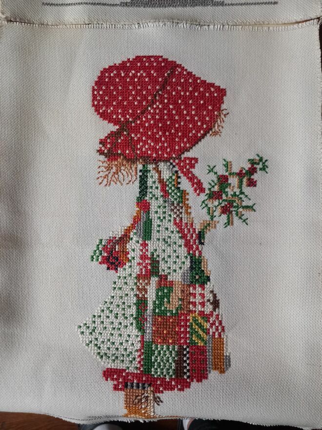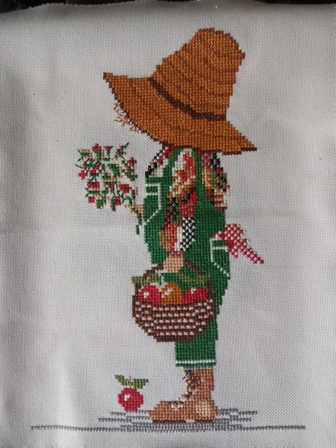 Haft krzyżykowy chłopiec i dziewczynka wykonany na kanwie