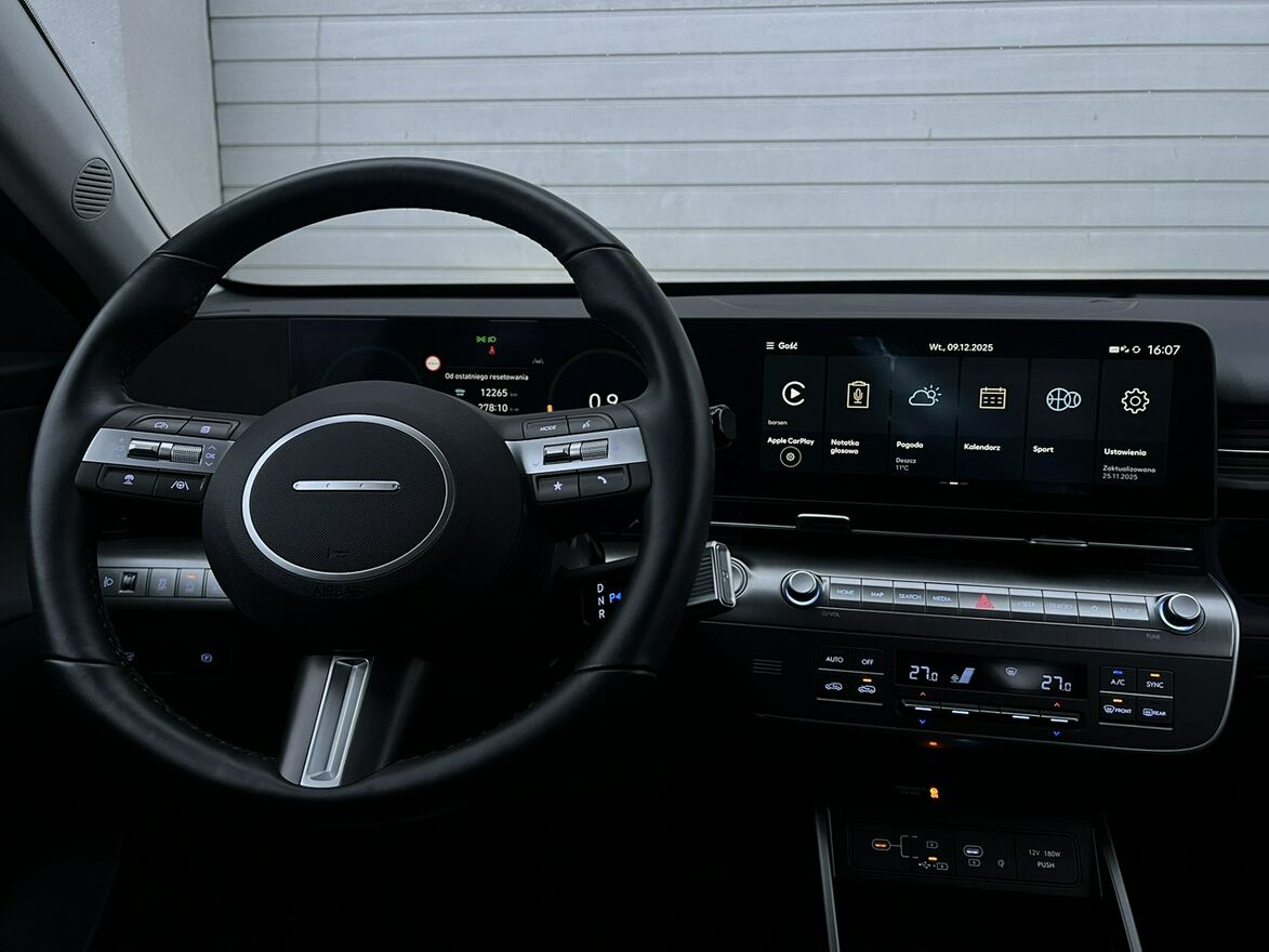 Hyundai Kona wyposażony w niezawodny, 120-konny silnik 1.0 T-GDI, który połączony jest z 7 stopniową dwusprzęgłową (DCT) automatyczną skrzynią biegów. Bogata wersja wyposażenia z dodatkowymi pakietami TECH i DESIGN. Samochód pochodzi z polskiej sieci dealerskiej, jest od pierwszego właściciela (Centrala Hyundai) i ma pełną dokumentację – komplet kluczyków, książka serwisowa.
