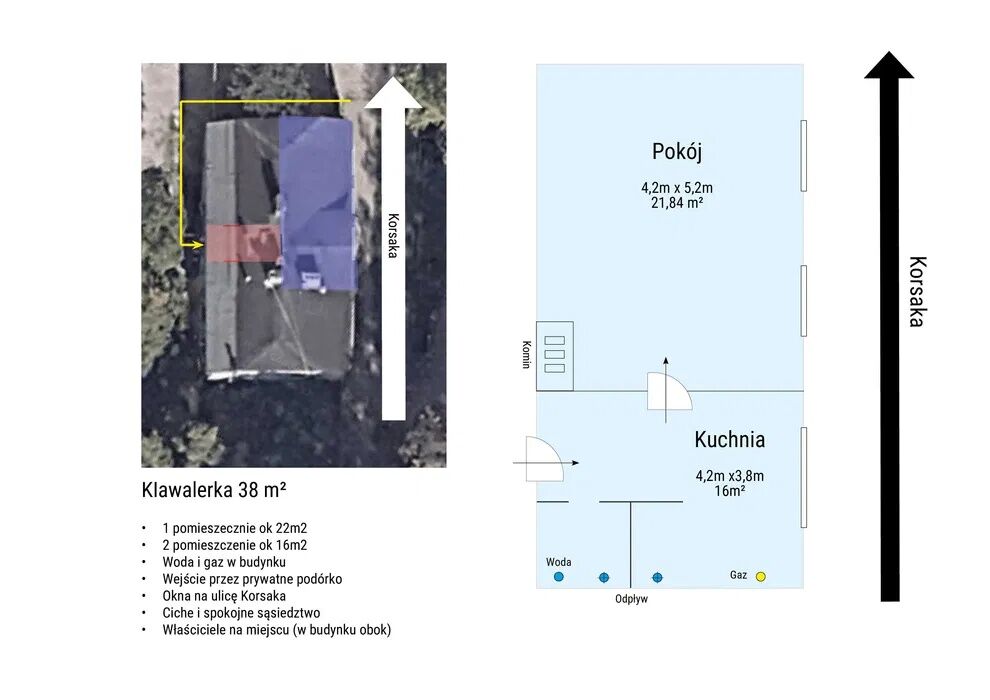 - Mieszkanie składa się z dwóch pomieszczeń (zobacz mapkę):