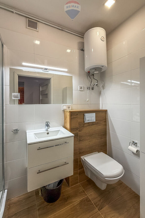 prysznic, umywalkę i WC. Woda ciepła podgrzewana jest bojlerem