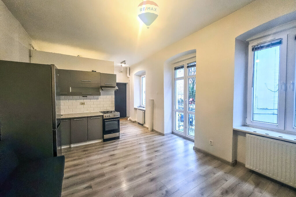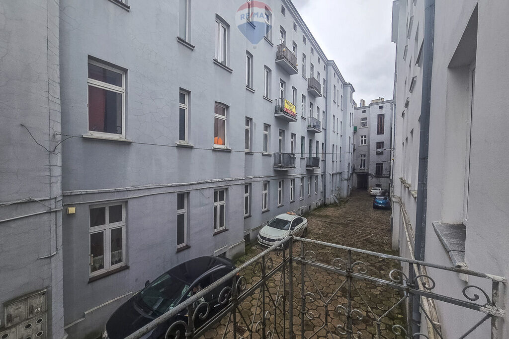 Kawalerka z dużymi oknami wychodzącymi na podwórko, na stronę