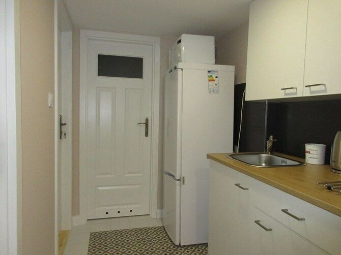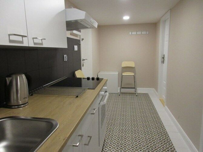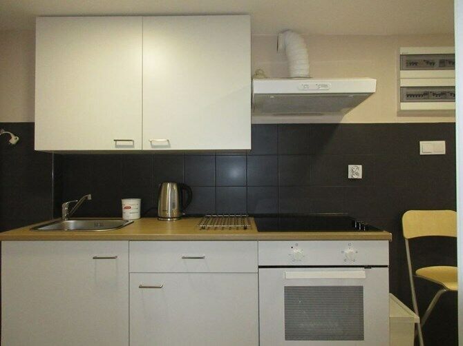 Aneks kuchenny: szafki, kuchenka elektryczna, kuchenka mikrofalowa,