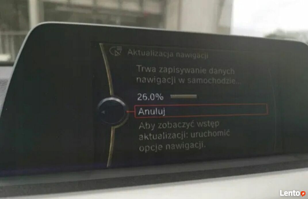 Wchodzimy w nawigację ( przycisk Nav ) a następnie trzeba nacisnąć przycisk Option, znajdujący się obok pokrętła iDrive. Znajdujemy i wybieramy Aktualna wersja Nawigacji (Navigation data Version).