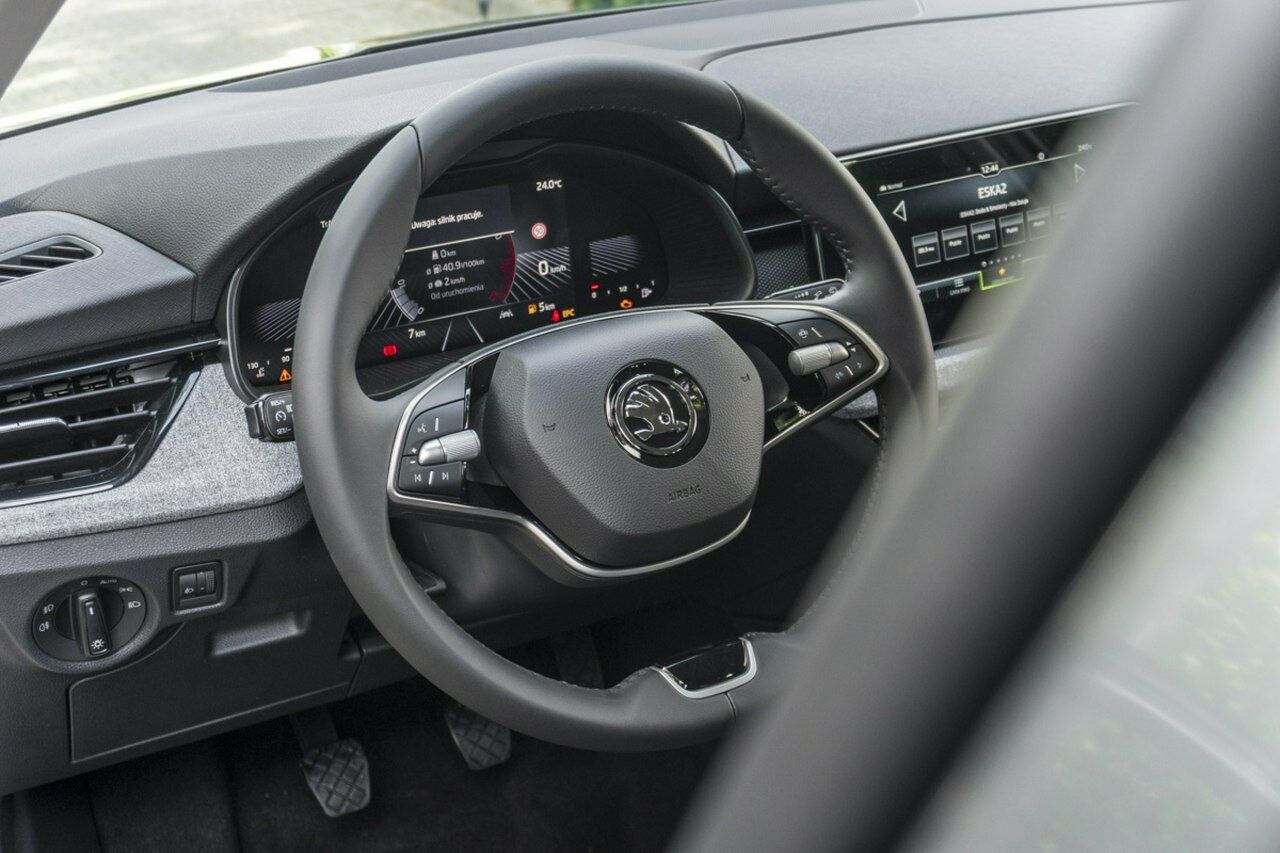 • Skórzana kierownica wielofunkcyjna z łopatkami do zmiany przełożeń