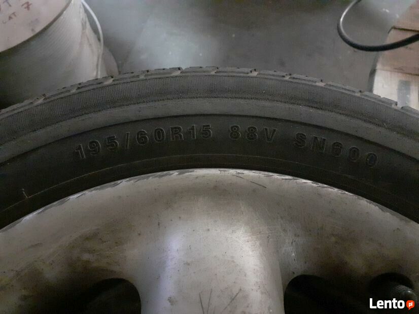 Całe koła, felgi 15 4x114,3 z oponami 195/60R15.Używane, do odświeżenia, jeździły na Galancie Kombi.