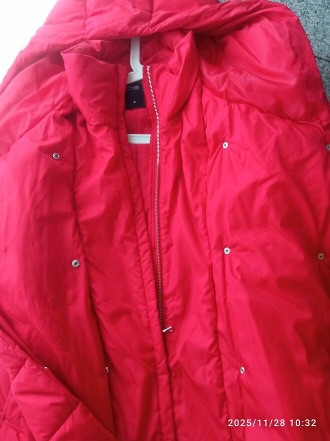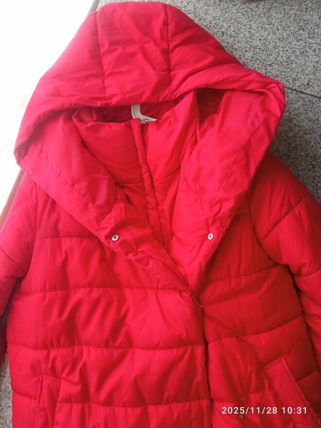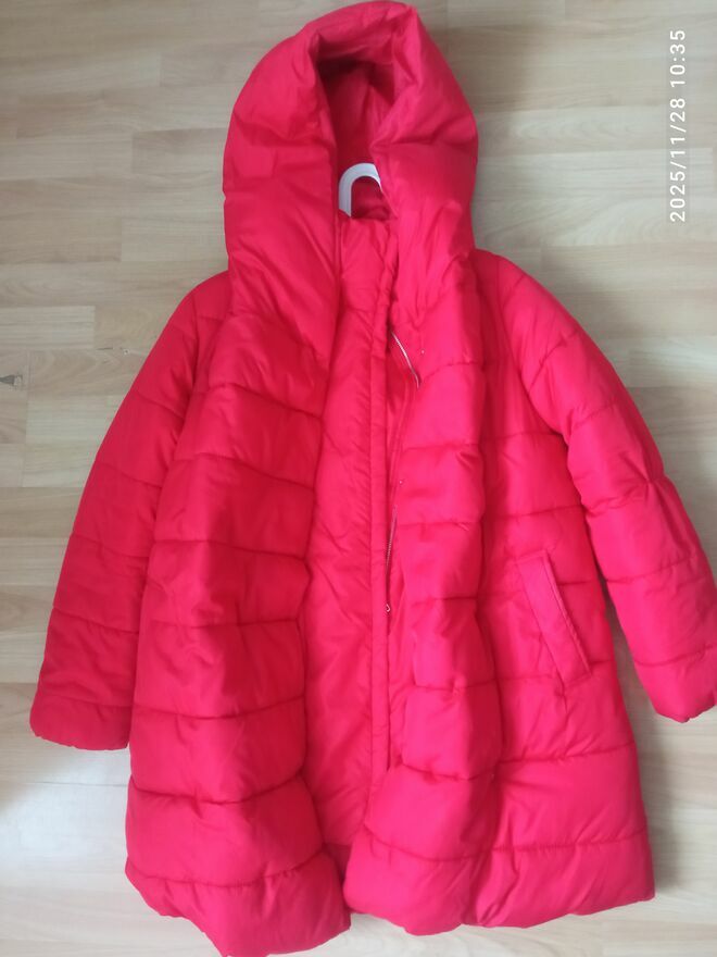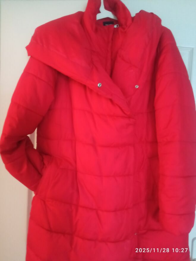 Kurtka ciepła, długa, czerwona