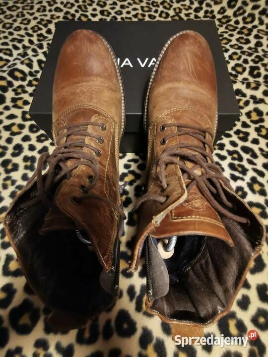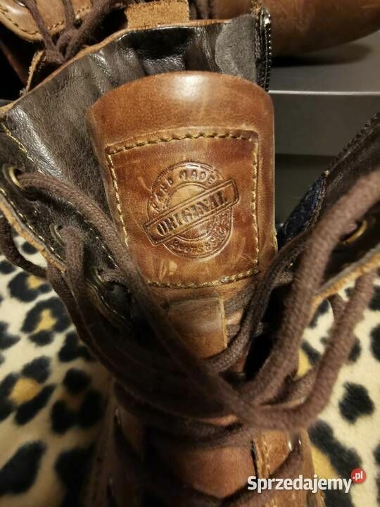 Sprzedam - ręcznie wykonane, używane ale nadal baardzo ładne - lekkie trapery męskie za kostkę. Buty są baardzo wygodne, wykonane ze skóry naturalnej w kolorze brązowym. Buty są w rozmiarze 43 a DŁUGOŚĆ WKŁADKI to : 29cm. Więcej informacji pod NR. TEL. podanym w moim ogłoszeniu - można też wysłać smsa lub wiadomość przez ten portal. Odbiór osobisty lub WYSYŁKA NA KOSZT KUPUJĄCEGO. Zobacz moje pozostałe ogłoszenia.Rubelina