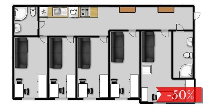 Do dyspozycji lokatorów są dwie łazienki oraz wspólny aneks