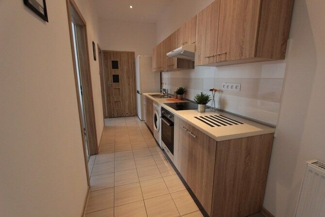 Aneks kuchenny: szafki kuchenne, okap, kuchenka elektryczna, lodówka