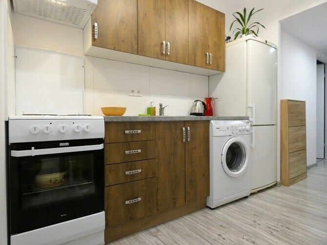 mikrofalówka, pralka oraz okap.
