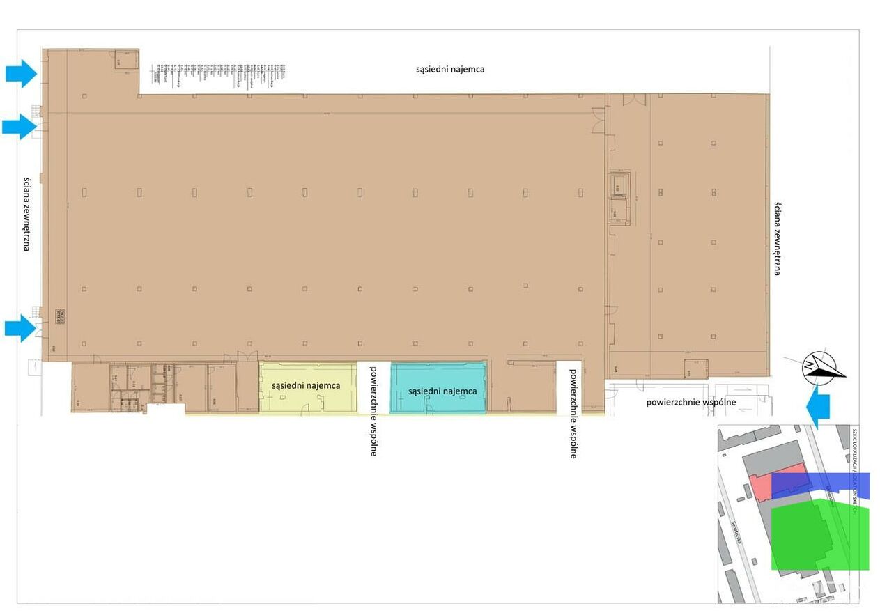 - dostęp przez bramę przemysłową (3m x 3m) z rampą mechaniczną od strony ul. Senatorskiej i wejściem od strony ul. Milionowej
